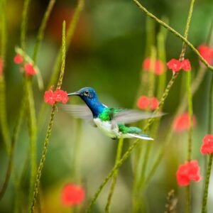 Kolibříkům se přezdívá létající drahokamy. Když jsem spatřil svého prvního, musel jsem této přezdívce dát za pravdu. Tito drobní ptáčci jsou totiž skutečně ozdobou deštných pralesů Latinské Ameriky. Možná i proto je jejich fotografování opředeno tvrdou prací a i já jsem si musel tento šperk do svého archivu tvrdě zasloužit. Na tuto fotografii jsem bez hnutí, s notnou dávkou trpělivosti a soustředění čekal téměř dvě hodiny. Kolibříci jsou totiž neobyčejně rychlí, vytrvale dokážou letět rychlostí až 50 km/h, umí bleskově měnit úhel pohybu křídel podle toho, jak právě fouká vítr! Dokážou se vznášet na místě nebo dokonce v letu couvat. Od pradávna jsou tito drobní ptáčci pro mnohé jihoamerické šamany poslem radosti, smíchu a lásky. I mě nakonec tento kolibřík bělokrký úsměv na tváři vykouzlit dokázal.